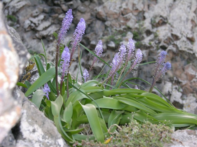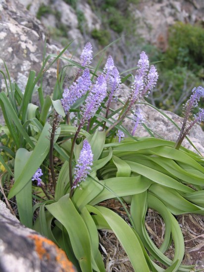 Autonoe haemorrhoidalis (Webb & Berthel.) Speta, syn. Scilla haemorrhoidalis Webb & Berthel., is from the Canary Islands. It flowers in late winter in shades of pink, mauve and blue. The name which may mean 'blood red', 'bleeding' or 'veins', may refer to the red stems. The three leaves are wide and fleshy. Photo taken by Oron Peri of a plant in his collection.