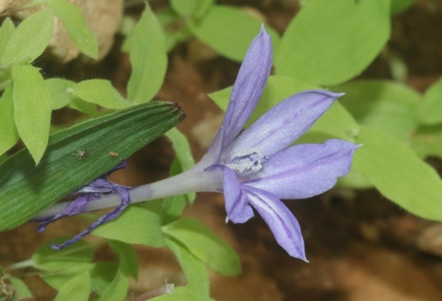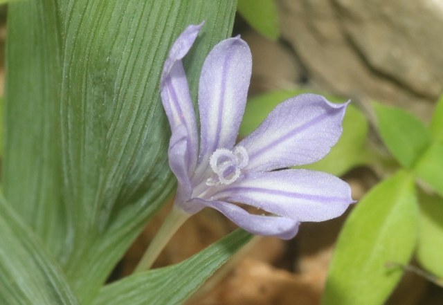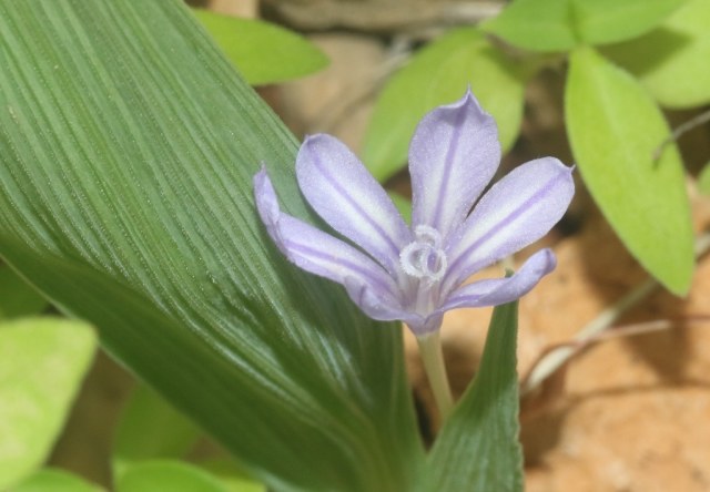 Cyanixia socotrana (Hook.f.) Goldblatt & J.C.Manning is endemic to the island of Socotra in the Indian Ocean, part of the Republic of Yemen. It was originally thought to belong to the genus Babiana as Babiana socotrana Hook.f., but Goldblatt et. al. in 2004, placed it in a new genus. It has axillary corms (unlike Babiana which has terminal corms), sword shaped to lanceolate lightly pleated leaves, and radially symmetric long-lived blue flowers with exserted anthers. Height range: 12-30 cm. Photos from iNaturalist were taken by James Bailey December 2024 and shared under a CC BY-NC license.