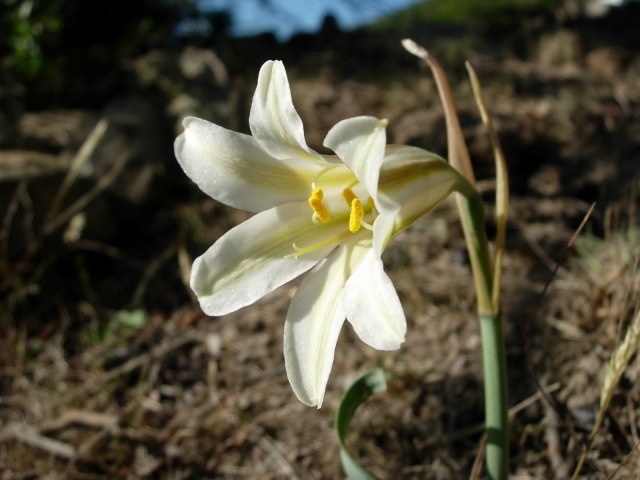 Cyrtanthus smithiae Watt ex Harv. is a deciduous, white or pale pink striped flowered summer-growing plant that has very attractive "corkscrew" foliage. The inflorescence appears promptly in early summer together with the new foliage. Height: to about 30 cm. This is quite an easy species to grow provided it is kept absolutely dry in winter, and watered rather infrequently in summer. Photos by Cameron McMaster in habitat in the Eastern Cape showing variations in different populations. The last photo was taken by Mary Sue Ittner January 2010 near Kaboega, a very dry area in the Eastern Cape, of a plant in seed.