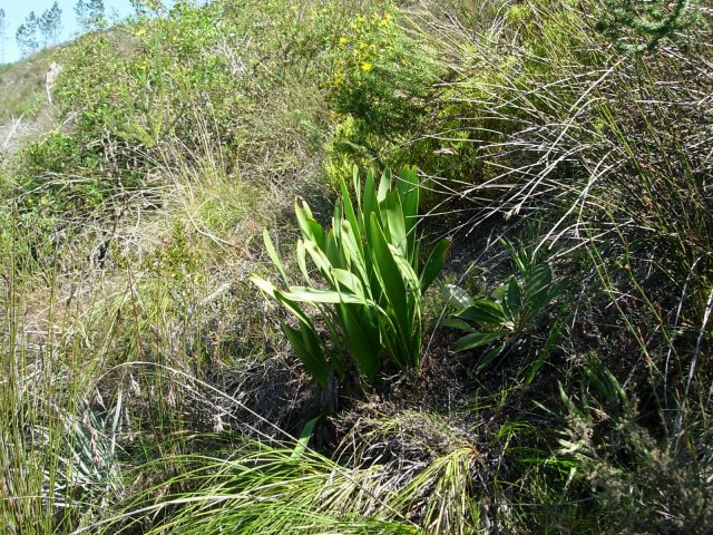 Cyrtanthus carneus Lindl. is one of the largest Cyrtanthus in the genus, growing very old and developing massive bulbs. It is also very rare and localised and most populations are severely threatened by alien vegetation. It is evergreen and has long, broad tough leaves. We have found it in a few places growing in fynbos in acid table mountain sandstone soil - in valleys on the northern side of the mountains near Napier where we live. It is shy to flower, but when it does, it has very large flowers borne on stems up to 70 cm high. Capsules take a long time to mature and ripen. Photos by Cameron McMaster of plants in habitat in the Overberg including the last of seed capsules.
