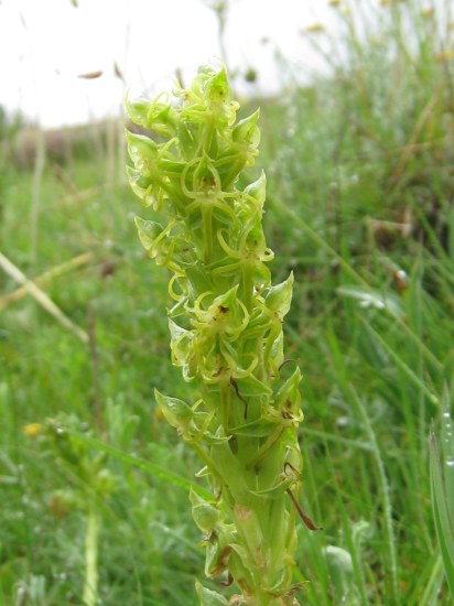 Habenaria laevigata Lindl. is a tuberous orchid found on stony grassland from 700 to 2000 m in the Eastern Cape of South Africa. It grows to 40 cm and has leaves that clasp the stem and green scented flowers in a dense inflorescence. It blooms late spring into summer. Photos taken by Cameron McMaster, Bob Rutemoeller, and Mary Sue Ittner January 2010 at Maclear and Naude's Nek.