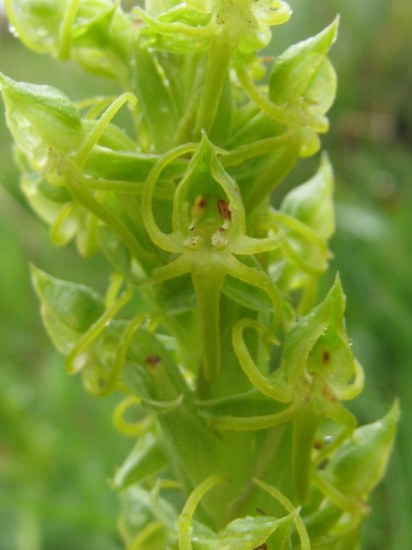 Habenaria lithophila Schltr. is a tuberous orchid growing to 30 cm. found on stony grassland up to 2500 m. from the Western Cape of South Africa to Tanzania. It has green to yellowish green flowers. The lower petal lobes are long and very slender. It blooms late spring into summer. The first two photos were taken January 2010 at Naude's Nek and the next two in Lesotho by Cameron McMaster.