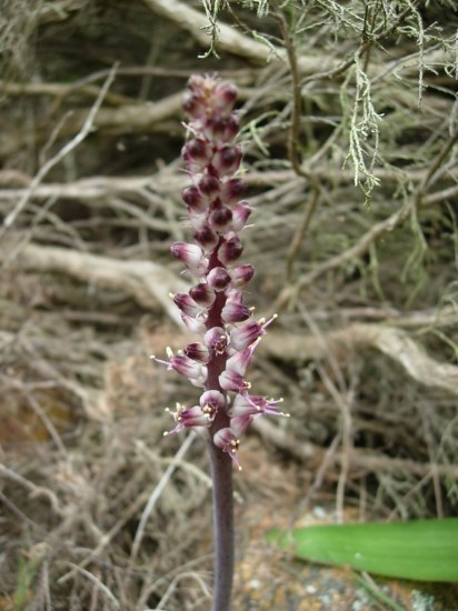 Lachenalia nardousbergensis G.D.Duncan has a limited distribution in fynbos in the Western Cape from Nieuwoudtville to the northern Cederberg, with one more outlier in northern Piketberg. It has two prostrate olive green pustulated leaves and campanulate magenta flowers with exserted stamens and grows to about 30 cm tall. It flowers late August to early October. The first photo was taken by Margaret Fox. The next four photos were taken by Alan Horstmann.