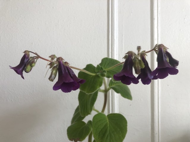 Sinningia helleri Nees is the type species of the genus Sinningia. It was described in 1829 (as Gloxinia schottii) and grown for a while in Europe before being lost in cultivation. Efforts to relocate this species in the type locality north of Rio de Janeiro failed, and the plant was thought to have gone extinct from habitat. Around 2014, an image of this plant showed up on social media, which was promptly identified as the lost species. Seeds became available in 2015, and members of the San Francisco Gesneriad Society were the first to grow and bloom this species outside of Brazil. Height range: to about 45 cm. The photos below were taken by Nhu Nguyen of the very first plant that bloomed, grown by a member of the San Francisco Gesneriad Society.