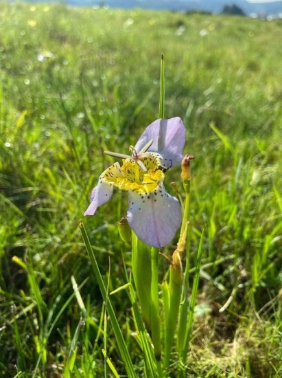 Tigridia mariaetrinitatis Espejo & López-Ferrari is found only in its type locality in Oaxaca State, Mexico. This species has erect flowers with lilac outer tepals with purple spots, yellow inner tepals with purple spots and a yellow base. It occurs in seasonally flooded plains at 2380-2520 m. Height range: 30-45 cm. More detailed information can be found here. The photo from iNaturalist was taken by isaac_js in July in Oaxaca, Mexico and shared under a CC BY-NC license.