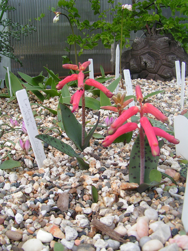 Greetings again, So even html is stripped by the list software... let's try that again: Eucomis regia: http://anexaminedlife.net/bulbs/eucomis_regia.jpg/ Polyxena longituba: http://anexaminedlife.net/bulbs/… Lachenalia rubida: http://anexaminedlife.net/bulbs/… In the background are Strumaria salteri and aff truncata as well as my largest Dioscorea elephantipes. -|<ipp