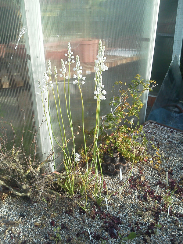 Greetings, In the greenhouse, after 4+ years of growing it with little foliage and one season skipped altogether, Harpagophytum procumbens is bloming from multiple branches: http://www.anexaminedlife.net/bulbs/harp_pro.jpg In front of the greenhouse, my colony Ornithogalum fimbromarginata is sending up a crowd of meter-high bloom stems: http://www.anexaminedlife.net/bulbs/orn_fim.jpg I'll cover another exciting bloomer in my next email... -|<ipp