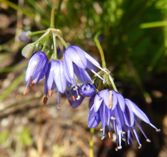 Allium fimbriatum var. fimbriatum is distributed in California to Baja Mexico. It has rose purple flowers with flaring tips. It grows in gravelly volcanic or serpentine clays. The photos below were taken by Nhu Nguyen in Pinnacles National Park.