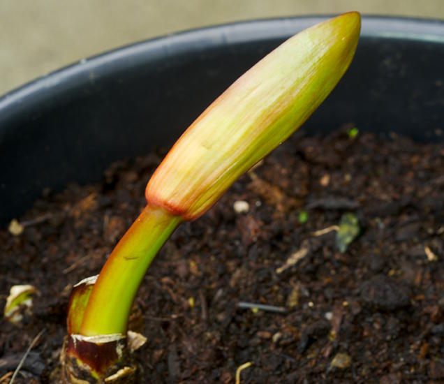 Amaryllis and its hybrid relatives have relatively large bulbs (the size of a softball or larger) and grow with the top of the bulb at the surface of the soil. The flower stalk is about two feet tall (0.7 m). Flowering is in fall, with individual florets opening over a period of a couple of weeks. The hybrids bloom over a period of 6-8 weeks, with different plants blooming at slightly different times. Flowering may be stimulated by summer fires, clearing away the weeds and other plant debris over them, and/or summer thundershowers. The flowers appear before the strap-shaped green leaves, which grow throughout winter and die back in spring. The plants are hardy to light frost, but prolonged freezes or hard frosts may damage the leaves and prevent flowering the next year. These bulbs are grown widely in Australia, and also thrive in coastal areas of California (USDA zones 9-10). They are harder to grow in inland areas of the state, where they do not bloom as reliably. We're not sure if the better flowering on the coast is due to milder temperatures there, or fog and higher humidity during the summer. If you're trying them inland, very occasional summer watering may help as it will keep the fleshy roots from drying out. But too much summer moisture will rot them.