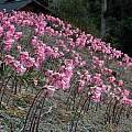 Amaryllis belladonna L., known to many as "Naked Ladies" because the flowers are pink to white and bloom before the leaves develop, is found in loamy soils in seasonally moist sites in the Cape Floral Province. It has a great variation in time of bloom, starting in summer and extending into fall. It has naturalized in many Mediterranean climates throughout the world and is especially popular in California. Height range: 2-3 ft.