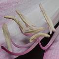 In 2013, two bulbs produced flowers. The photos below show detail from the tips of the flower petals. A question to the PBS list as to what these structures did and were called, brought forth a comprehensive reply from Dylan Hannon. They are called "cohering keels" and keep the flower closed until it has developed fully. The classic paper on the subject is "Cohering Keels in Amaryllids and Related Plants" by H. Harold Hume Proceedings of the Florida Academy of Sciences (1: 48-57, 1936). More photos can be seen for Nerine bowdenii.