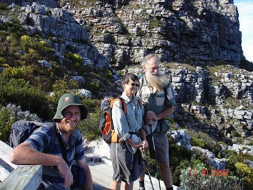 Andrew Harvie lives in New South Wales, Australia. He has made several trips to South Africa and has added habitat photos of bulbs he has seen there to the wiki. The photo below shows him (lower left) in South Africa with his late aunt and uncle, Rachel Saunders and Rod Saunders.