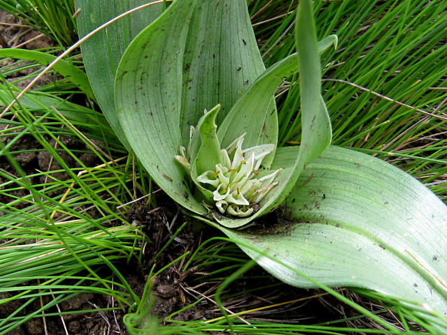 Colchicum longipes (Baker) J.C. Manning & Vinn., syn. Androcymbium longipes Baker, is found in moist slopes and stony grasslands from the Karoo to the Eastern Cape. It has lanceolate channeled leaves and greenish-yellow flowers clustered between leaf-like bracts. Height: about 30 cm. Photos were taken by Bob Rutemoeller, Mary Sue Ittner and Cameron McMaster at Naude's Nek and Tiffendell in the Drakensberg Mountains in the Eastern Cape. The last photo from the book Plants of the Klein Karoo courtesy of Jan and Anne Lise Schutte-Vlok.