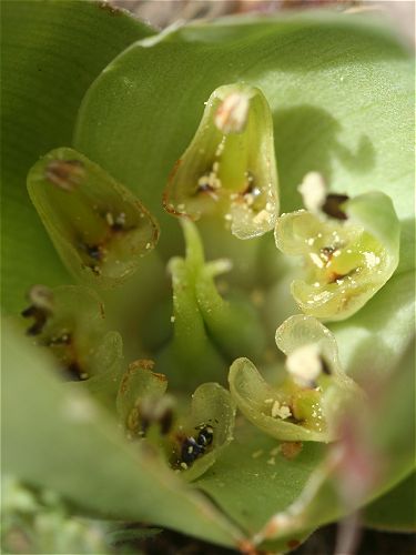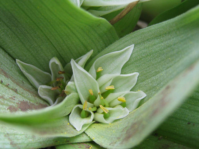 Colchicum capense (L.) J.C.Manning & Vinn., syn. Androcymbium capense (L.) Druce, is a stemless plant found on clay or loam flats from Namaqualand to the western Karoo and Swellendam, South Africa. Flowers are enclosed in large white bracts, sometimes striped green. Photo 1 was taken by Rod Saunders and photo 2 was taken by Gottfried Milkuhn of a plant in cultivation.