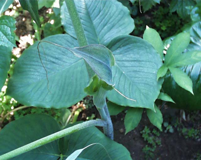 Arisaema cf. consanguineum is a nice form identified as close to this species from the UC Botanical Garden. It can reach nearly 2 meters (6 ft). Photos were taken by Nhu Nguyen.