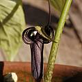 Here is a plant that shows its distinctive horse-shoe leaf and a twisted spadix. Photos by Giorgio Pozzi May 2006. These tubers came from Chen nursery by mistake in a mix with A. lobatum, A. serratum and A. amurense as A.60. They both have a twisted spadix.