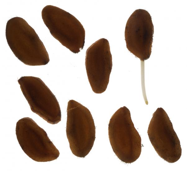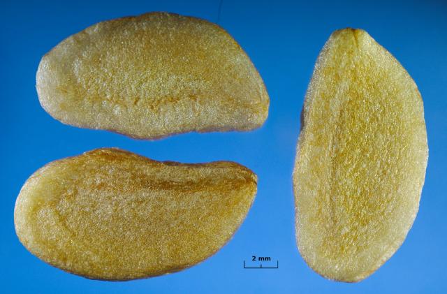 Seed photos by David Pilling, the first was taken using reflected light and the remainder of the same seed were taken using transmitted light. In the first photo, embryos are barely visible, see Fritillaria Germination. The next photo, taken 33 days later after the seeds had been exposed to cold (32-40 °F) and wet, shows the embryos have developed. The final photo shows germination after 69 days.