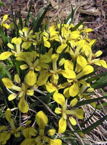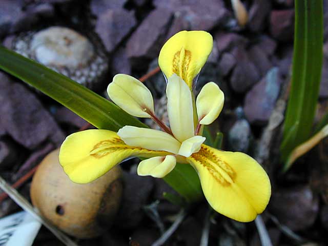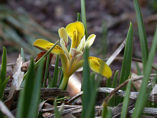 Iris minutoaurea Makino is from Korea and China and is cultivated in Japan. It has yellow flowers, and grows to 10 cm. Photos by John Lonsdale.