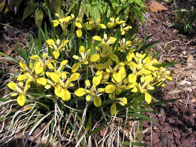 Iris pseudacorus L., yellow flag or pale-yellow iris, is native to Western Europe including Great Britain, Western Asia and North West Africa, but planted all over the world. Height range: 60-90 cm. In some environments it is highly invasive and banned. The seeds float and are distributed by water. It grows in wet conditions, like bogs, fens, or other wetlands but not in deep ponds (though they may colonize the edges). Photos by Janos Agoston.