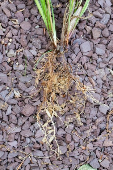 Iris laevigata 'Variegata' is a beautiful form of Rabbitear Iris. It is native to Japan and grows well in damp soils or shallow water. Photo taken May 2005 at Plant Delights Nursery by Nestor White.