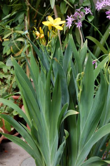 Belamcanda commonly known as Blackberry lily, is in the Iridaceae family and has rhizomatous roots and iris-like fans of foliage. The flowers are followed by clusters of glossy black seeds which resemble blackberry (Rubus) fruit. Height range: 60-90 cm. As a result of DNA sequence evidence, Peter Goldblatt and David Mabberley in Novon 15: 128, 2005 are now including Belamcanda in Iris. Because of priorities and taxonomic necessities, the new name they propose for Belamcanda chinensis is Iris domestica. This change has been accepted.