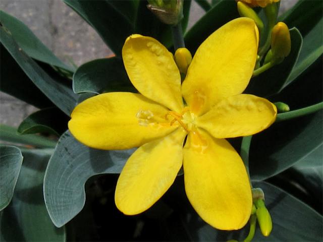 Iris domestica (L.) Goldblatt & Mabb. syn. Belamcanda chinensis (L.) Redouté is native to China and Japan and has orange flowers with reddish spots. Photo 1 taken July 2004 by Jay Yourch, photo 2 by Martin Bohnet.