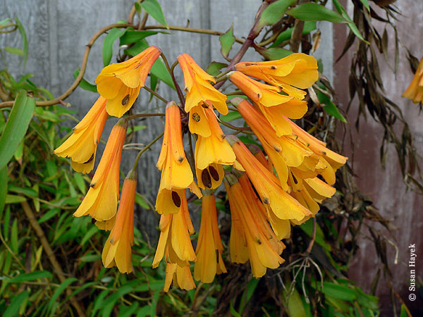 Photo 1 by Mary Sue Ittner is of a Bomarea flowering in May in Sandy Scott's Northern California garden. The plant tag did not have a species name on it.