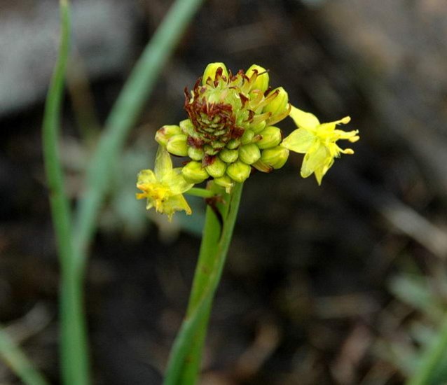 Bulbine Wolf is a genus in the Asphodelaceae family. It is closely related to Bulbinella but has flowers that are "bearded" with hairy stamens. Many of the species are not geophytes. We will be listing ones on this page that are tuberous, rhizomatous, or bulbous and perhaps some that are not. Distribution of the more or less 73 species is from tropical and southern Africa and also Australia. Leaves are linear to lanceolate and often succulent or fleshy. Flowers are small, mostly yellow (rarely white, orange or pink).