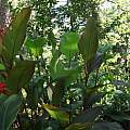 Canna 'Pretoria' is also known as 'Bengal Tiger'; it has striped leaves. Photographs by Lin Grado.
