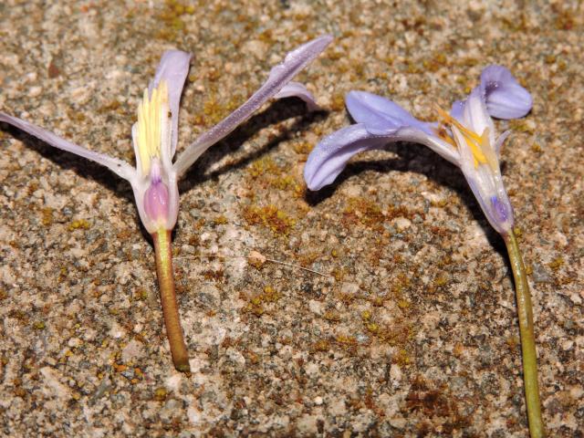 Scilla nana (Schult. & Schult.f.) Speta, syn. Chionodoxa nana (Schult. & Schult.f.) Boiss. & Heldr., C. cretica Boiss. & Heldr.), is from Crete. It has two leaves and one to five flowers per bulb. The flowers are pale blue with blue tips, and a blue stripe down the center of each petal. Height: about 15 cm.