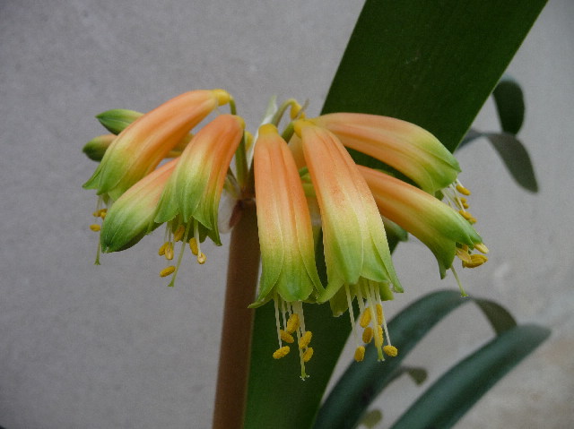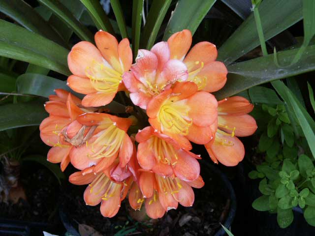 Clivia miniata 'Apricot Spider' was found at a garden centre. Typically bears 12 blossoms of soft apricot. Photo 2 by Jamie Vande.