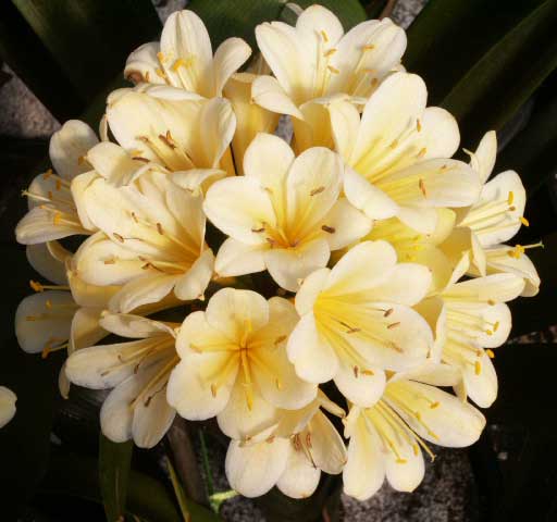 Clivia miniata 'Solomone Yellow' is a yellow flowered strain from Joe Solomone of Watsonville, California. Photos taken June 2007 by Jay Yourch.
