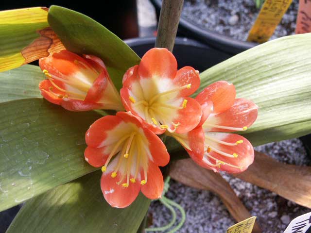 Clivia miniata 'Jenny' is a Dave Conway selection, orange with a yellow stripe (photo 2).
