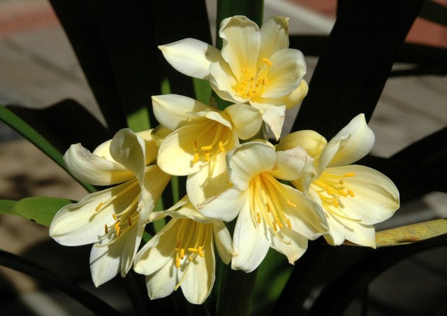 Clivia is a genus in the Amaryllidaceae family from South Africa. Clivias are rhizomatous plants with thick, branching roots. Displaying absolutely gorgeous flowers, they are becoming quite popular throughout the world. Hybridizers have been expanding on the beautiful color combinations nature had already provided, so in addition to the bright orange Clivia miniata commonly appearing in landscapes here in Southern California, we are now seeing gorgeous yellows, peaches, pinks, and some near-whites. New color combinations are also being introduced by breeders working with the pendulous forms of Clivia, Clivia nobilis, Clivia gardenii, and Clivia caulescens.