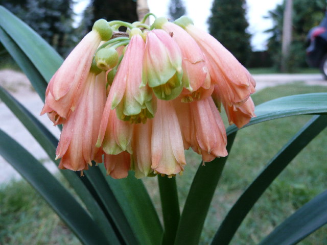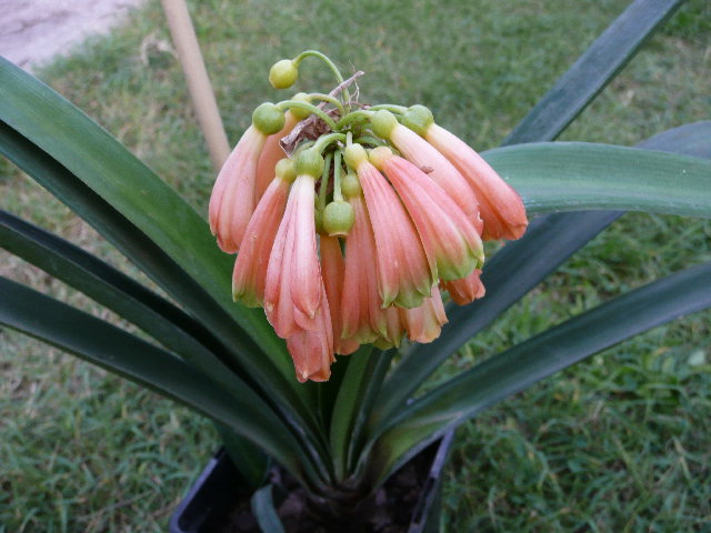 Clivia × cyrtanthiflora is a name given to hybrids between Clivia miniata and Clivia nobilis with narrow pendent flowers. Photos 1-2 are of plants growing at the LA Arboretum with a huge number of blooms! The second was a large peach and the third was a F1 × cyrtanthiflora from Rudo Lotter. Height: about 60 cm. Photos John Ingram.