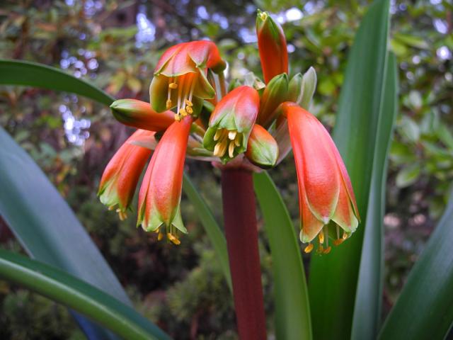 Clivia caulescens R.A.Dyer is native to South Africa. Height range: to about 1.5 m. The photos below were taken by Dylan Hannon from the Huntington Botanical Garden where they grow underneath a Coast Live Oak (Quercus agrifolia).