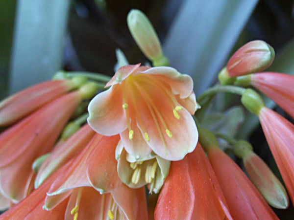 Clivia miniata 'Little Charm' Series from Joe Solomone, a series of diminutive flowers in medium-sized umbels (photo 2).
