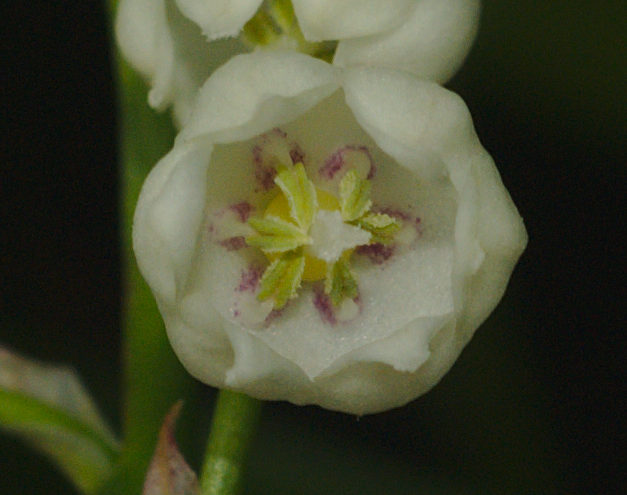 Convallaria majalis L. is commonly called Lily of the Valley. This species is found in woods, scrub, and meadows with a native range of Europe to Caucasus. It is the most commonly grown species. It varies widely depending on its origin. It bears sweetly scented white bell-shaped flowers on terminal racemes in the spring. The Latin name breaks down to 'of the valley' and 'May', which links with another common name "May lily". Height range: 15-30 cm. The first two photos were taken April 2007 by Jay Yourch. The remaining photos by David Pilling show a ripening fruit, shoots and flower details.
