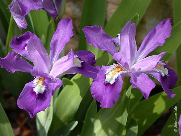 Crested Iris , a section called Lophiris in the beardless iris (Limniris) classification by Mathew, are widely distributed from southeast Asia to the United States. Species have longitudinal ridges or crests on their falls and grow from rhizomes.