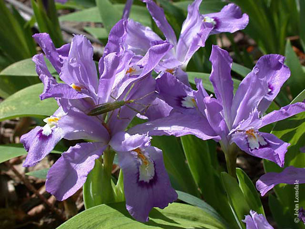 Iris cristata Aiton hardly needs an introduction, but this eastern American Iris is a great favorite for woodland conditions. It's available in many named forms; all are lovely. I grow mine in full blazing sun, and I find I get better flowering in full sun, to no adverse effect. What I grow is the regular species. Photos by Mark McDonough.