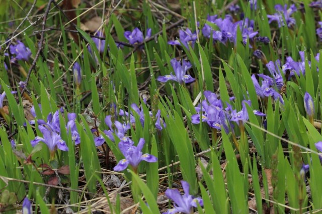 Iris lacustris Nutt. is from the Great Lakes region of the United States. It has lavender-blue, rarely white flowers, with gold crests and a white patch. Photos from iNaturalist taken by Brandon Corder in June in Wisconsin and Brad Von Blon in May in Michigan and shared under a CC BY-NC license.