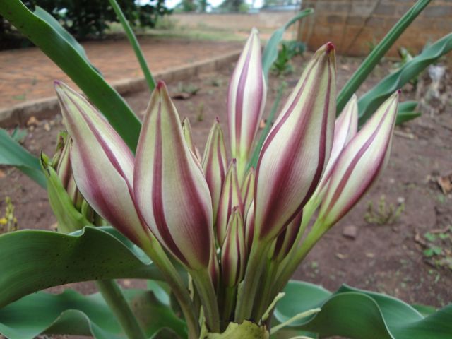 Crinum lugardiae N.E.Br. is a nice species, small compared to other Crinum. The short leaves form a rosette almost flattened on the ground and the flower stalks are short too, no more than 30 cm tall. Flowers open at late afternoon and are very scented. The flowers in bud have a nice reddish stripe outside, which almost disappears as the flowers open, the interiors are pure white. This species sets seeds easily, whether selfed or cross pollinated. Photos by Angelo Porcelli.
