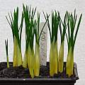 Crocus chrysanthus 'Zwanenberg Bronze' corms and resulting flowers photographed by David Pilling below were received as this cultivar; however, the only semi-double usually mentioned is Crocus chrysanthus 'Goldmine', so that is more likely what they may be. Not all the flowers were double.