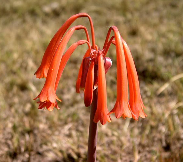 Cyrtanthus contractus N.E.Br. is widespread in the Eastern Cape where it is found from the inland areas northward. It occurs in various habitats, sometimes in open grassland where it flowers in October or earlier if stimulated by fire. The photos below were taken by Cameron McMaster from habitat.