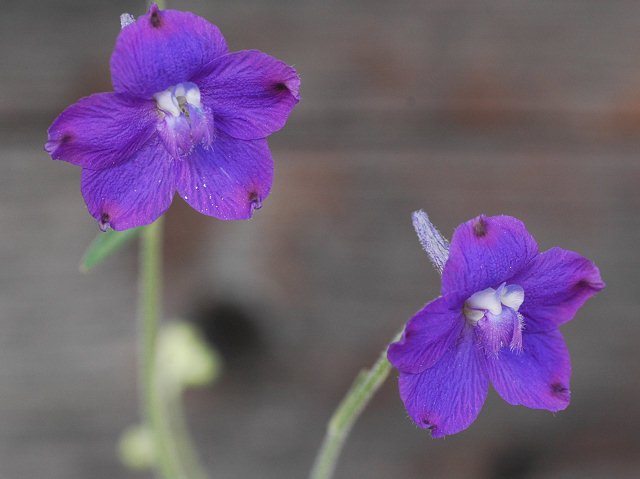 Delphinium parryi A.Gray is a coastal Southern California species that is also found in Baja California. It is found in chaparral and open woodlands, grows from a deep, woody rootstock, and has a tall stalk with beautiful large blue flowers and divided leaves. Height: to about 3 ft. The first two photos are of plants grown from seed. The next pictures show it growing in the wild in grassland along Jolon Road in Monterey County and near Figueroa Mountain, Santa Barbara County, and a closer version requiring a scramble up the side of a cliff where it was growing in chaparral. Photos by Mary Sue Ittner.