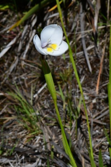 Diplarrena (known once as Diplarrhena) is a genus in the Iridaceae family endemic to Australia. It has two species that are showy and excellent for cultivation. Both grow from a rhizome into clumps of fans of stiff iris like leaves up to 30 cm tall but not noticeable amongst the long grass and bushland in which they grow until they flower. The flowers come on a fine but strong stem 30 to 45 cm above the leaves and stand out like small white flags. The individual flowers are up to 5-6 cm across and last 5 days or more with a succession of flowers making a display of 6 to 8 weeks in spring to early summer.