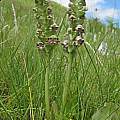 Disperis tysonii Bolus grows on mountain grassland from the Eastern Cape of South Africa to Mpumalanga. It grows from 15 to 40 cm and has alternate ovate to lanceolate leaves and pink to purplish red marked green flowers in a dense one-sided spike. It flowers February to April. Photos taken by Cameron McMaster at Aurora Peak and Mary Sue Ittner at Naude's Nek in the Eastern Cape.