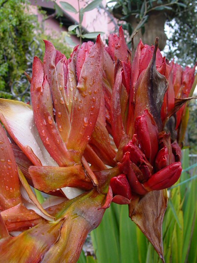 Doryanthes palmeri W.Bull is a species from Queensland and New South Wales known as Spear Lily. Photos #1-3 below were taken by Alberto Grossi in northwest Italy, near the Italian Riviera. Height range: 6-10 ft. The first two pictures of an inflorescence and open flower were photographed at the Botanical Gardens Hanbury at La Mortola, and the third is of a whole plant with fruits at Villa Ormond, San Remo. Photos #4-5 were contributed by the UC Botanical Garden. Photo 6 was taken by Nhu Nguyen at the UC Botanical Garden.