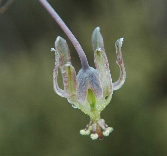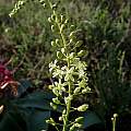 Drimia macrantha (Baker) Baker, known most recently as Thuranthos nocturnale R.A.Dyer, is a southern Africa species with flowers that open late in the day. Height: 10 cm. Photos were taken by Mary Sue Ittner January 2010 at Waainek in the Eastern Cape on a cool (for summer) overcast day when the flowers were open earlier. It was difficult to photograph a whole plant all in focus so the photos show various features (buds, leaves, close-ups of flowers at different stages.)