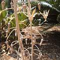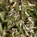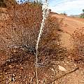 Drimia echinostachya (Baker) Eggli & N.R.Crouch, syn. Urginea echinostachya Baker, is found in the midlands of the Eastern Cape and KwaZulu-Natal where it grows in stony grassland, flowering August to November, sometimes later. It has narrowly lanceolate leaves and spreading to nodding campulate cream or brownish flowers with the tepals joined below up to a quarter and with a darker dorsal stripe. Anthers and ovary are yellowish green. Height range: 4-7 ft. Photos from Cameron McMaster were taken in the Eastern Cape.